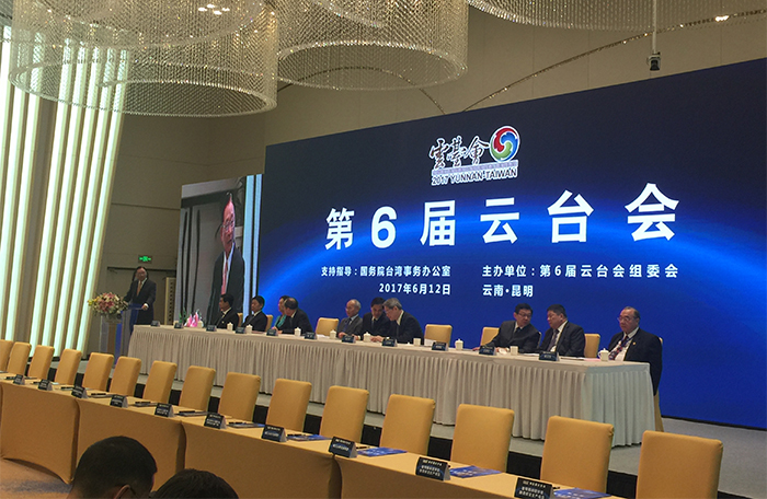 6月12日,以“共享'一带一路'机遇,深化云台融合发展,推进辐射中心建设”的为主题的第6届云台会在昆明开幕,来自两岸的政要、企业家、专家学者、知名人士700余人出席了开幕式。新葡萄官网党委书记陈世波、校长黎素梅、副校长熊晶受邀参加了开幕式。