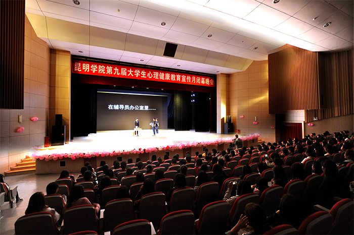 5月25日,新葡萄官网第九届大学生心理健康教育宣传月闭幕晚会在学生会堂顺利举行,副校长郭华、学生处处长晁丽华、团委副书记沈嘉以及各院系书记、副书记出席,来自18各院系的1000余名学生参加闭幕晚会。