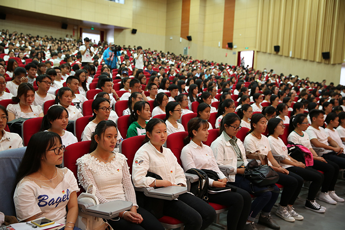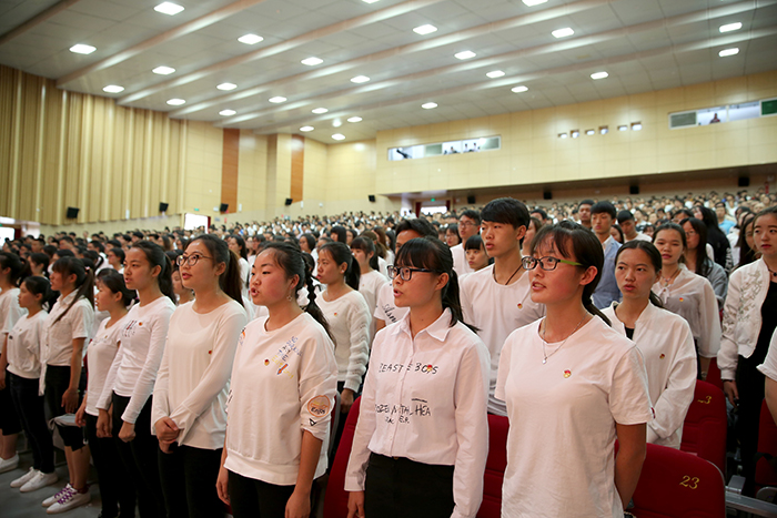 5月12日,新葡萄官网纪念五四运动98周年暨建团95周年表彰大会在学生会堂隆重举行。党委书记陈世波,校长黎素梅,纪委书记王映平,副校长郭华、沈凡,副校级领导孙勇,学校全体中层干部,各院系团总支书记,全体辅导员以及全校受表彰的团员青年代表共1300余人参加此次大会。