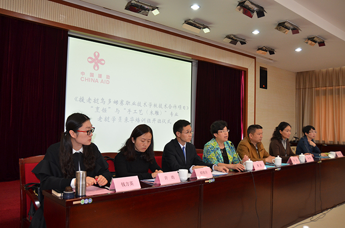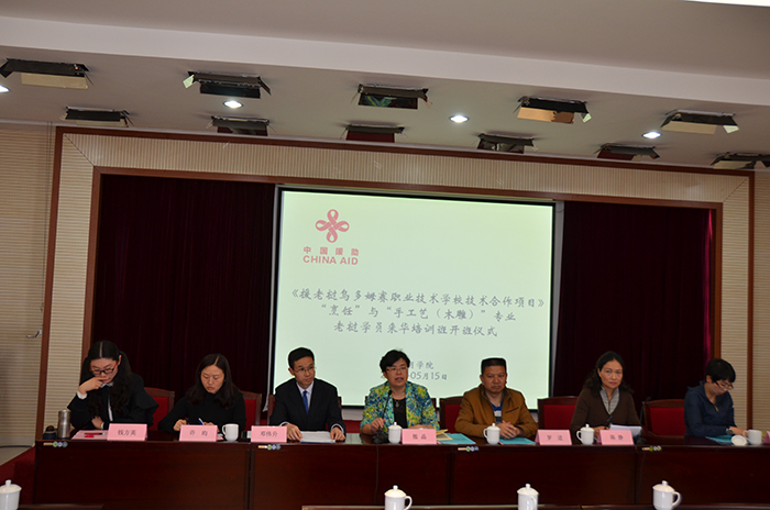 5月15日,新葡萄官网举办新葡萄8883官网AMG联合云南省建设投资控股集团有限公司承接中国商务部“援老挝乌多姆赛职业技术学校技术合作项目”第二期培训班开班仪式。副校长熊晶、国际交流合作处副处长陈静、美术与艺术设计学院党总支书记罗进和副书记李正红、旅游学院副院长杨韫以及云南省建设投资控股集团有限公司国际工程部工程师邓伟升(援老挝乌多姆赛职业技术学校技术合作项目经理)、昆明市人力资源中心职业能力建设处主任许昀和副主任钱方英等出席了开班仪式。