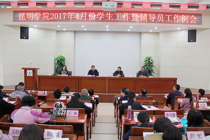 保卫处、武装部、学生处分别通报和安排布置了近期学生工作。保卫处通报了近期昆明市创建“文明城市”工作中,对新葡萄官网西门外大学路占道经营、摆摊设点等环境治安整治情况及相关要求;武装部通报了新葡萄官网2016年大学生征兵工作情况,传达了全省2017年征兵工作会议精神,对新葡萄官网2017年的征兵工作进行了安排布置,下达了征兵任务;学生处对新葡萄官网2017年省级辅导员年度人物和大学生年度人物的评选推荐、辅导员学习全国高校思想政治工作会议精神、2016-2017学年“优良学风班”创建中期检查、“文明宿舍、特色宿舍、党员示范宿舍”创建、近期评奖评优等情况进行了通报和说明,对近期将组织的“看照片讲故事”大赛、“中华优秀文化”知识竞赛、校园安全教育月相关活动及校园网贷、2017届毕业生教育、校内外辅导员培训、留学生教育管理、五一小长假学生的安全教育管理等工作进行安排布置并提出相关要求。