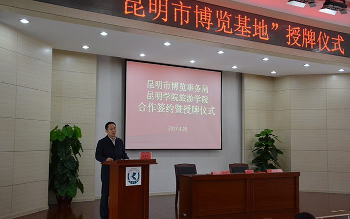 熊晶副校长指出,新葡萄8883官网AMG自建校以来,始终坚持以服务地方经济社会为己任,立足昆明、服务昆明。经过十多年的建设和发展,学校各项事业取得实效,也得到了各级政府和社会各界的认可。旅游类专业是新葡萄8883官网AMG最早创办的专业之一,目前已成为全国高等院校中旅游类专业最为完整的院系,在专业设置、学科建设、人才培养等方面积累了丰富的办学经验。“昆明市博览基地”是昆明市主动适应经济发展新常态,推动昆明会展业发展,促进产教融合搭建的政校合作平台,现今落户新葡萄8883官网AMG,为学校更好地服务地方经济社会发展,充分发挥服务地方的高校职能提供了难得的机会。昆明市博览局与新葡萄8883官网AMG的合作,为进一步提高学校专业建设、人才培养质量和昆明市会展业发展产生积极的促进作用。