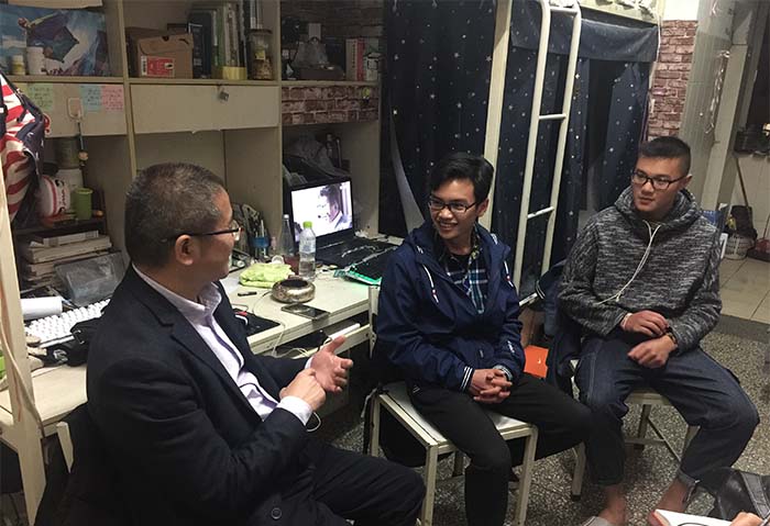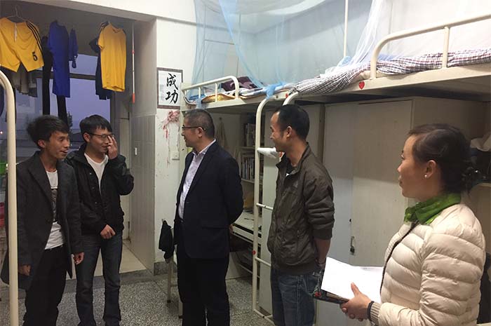 4月28日晚上,学校党委副书记张祖武带领机关值班人员走访学生宿舍,看望五一节留校学生。