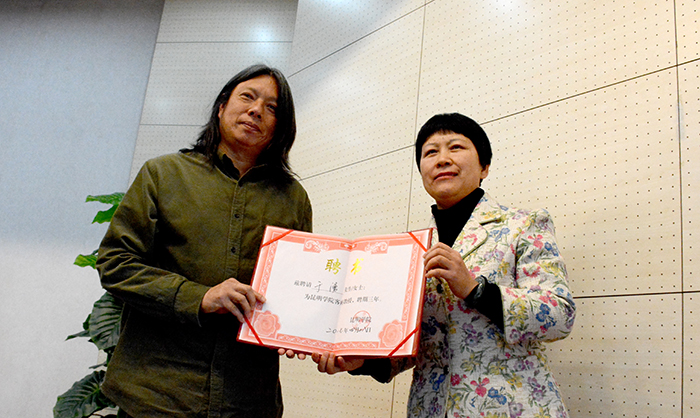 受聘的专家学者共六位,分别为著名诗人、散文家、文艺评论家晓雪;中国作家协会创作联络部主任尹汉胤;战旗文工团一级作曲家杨正仁;云南省美术家协会雕塑艺术委员会主任张志禹;俄罗斯油画云南本土文化代表性人物高中炎;云南根艺美术学会常务副主席于涌。