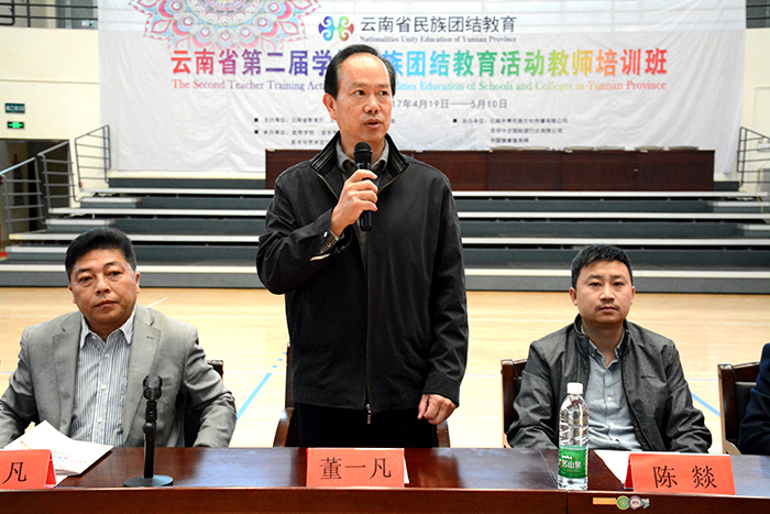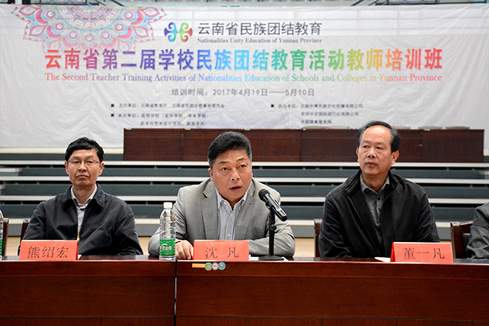 4月20日,云南省第二届学校民族团结教育活动教师培训在新葡萄官网综合体育馆举行开班仪式。云南省教育厅民族教育处处长董一凡,云南省民族宗教委员会教科处主任科员陈燚,新葡萄官网副校长沈凡以及美术与艺术设计学院、旅游学院、体育学院等部门党政负责人,参训的300多名学员参加了开班仪式。