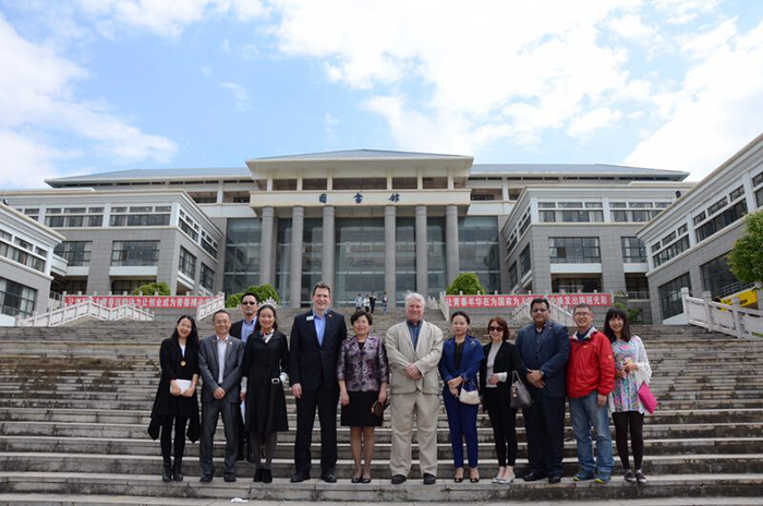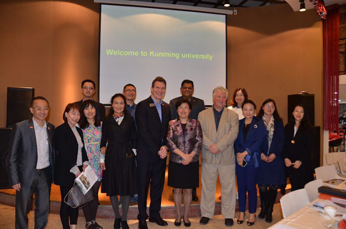4月24日,加拿大不列颠哥伦比亚省国际教育协会执行主任马丁博士、兰加拉学院首席执行官诸霖德先生、国际教育部韩锡安先生、加拿大优联咨询有限公司陈永玲女士、在云南省教育厅国际交流合作处龙薇副处长的陪同下访问新葡萄8883官网AMG。副校长熊晶、国际处副处长陈静、旅游学院院长田芙蓉、学前与特殊教育学院副院长李里、校长办公室王祖辰以及相关人员热情接待并与之会谈。