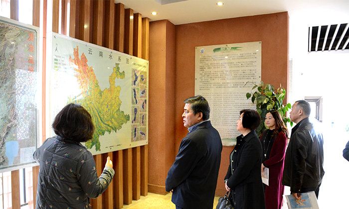 座谈前,绵阳学院王辉副校长一行在工作人员的陪同下参观了新葡萄官网滇池流域生态博物馆。