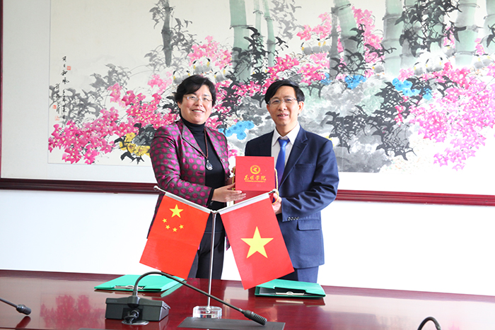 熊晶副校长对越南老街省教育厅代表团的到访表示热烈地欢迎,向来访客人介绍了新葡萄官网的基本情况,并对农学院、城建学院、旅游学院、自机学院、学特学院几个特色专业的定位与办学取得的成果作了详细介绍,表示将为双方合作项目提供强有力的支持。阮英宁厅长真诚地感谢新葡萄官网的热情接待,在参观过程中对各实验室的硬件设施和办学特色表达了浓厚的兴趣,称将派出更多留学生来新葡萄8883官网AMG进行交流学习,希望新葡萄8883官网AMG能为留学生提供一定的奖学金。同时,他表示愿意化身桥梁,牵线老街省其他大学与新葡萄官网开展更多的合作项目,在未来的合作中希望能挖掘更多的职业技能培训项目,对于老街省感兴趣并能促进当地发展的一些应用型项目中,阮英宁厅长渴望新葡萄8883官网AMG能全方位提供帮助。邓德泰校长则强调了除双方商议的合作项目外,更值得向中国学习的四个方面是:汉语、中医、农业、体育。座谈结束后,双方代表签署了合作备忘录,并互赠了极具纪念意义的礼物。