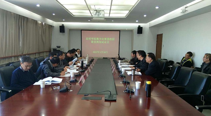 1月18日下午,《新葡萄8883官网AMG智慧校园建设发展规划(2016—2020年)》论证会在新葡萄8883官网AMG办公楼311会议室举行。副校长沈凡出席会议,教务处处长解永刚、资产与实验室管理处处长赵庆江及现代教育技术中心部分人员参加会议。专家组由昆明理工大学、云南师范大学、云南大学、云南财经大学、云南中医学院、云南交通职业技术学院、昆明移动公司等信息化建设与管理专家组成。