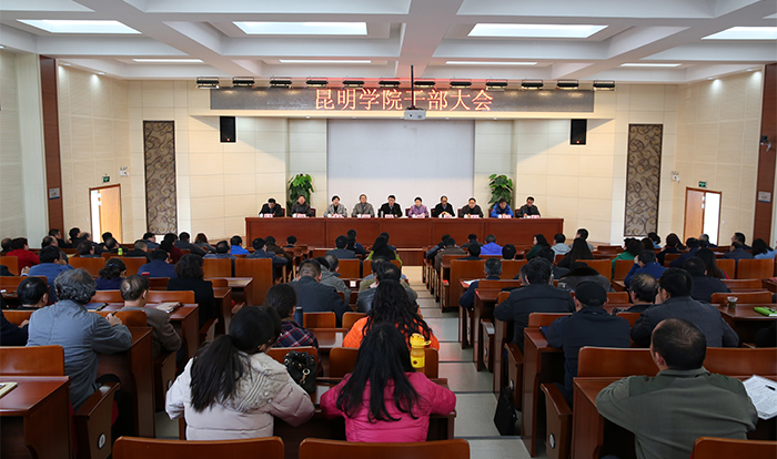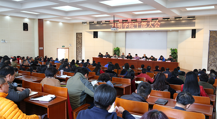 陈世波书记强调,2017年,学校坚定不移地按照“转型发展、内涵提升、重点突破”的思路,以学校更名昆明大学为目标,以申报硕士学位授予单位为突破点,综合施策,精准发力。全体党员干部要增强“四个意识”,咬住工作任务目标不放松,自觉担负起管党治党政治责任和领导责任,以解决突出问题为突破口和主抓手,凝心聚力、攻坚克难、奋力前行,撸起袖子加油干,以更加奋发有为的精神面貌和优异成绩迎接党的十九大胜利召开。