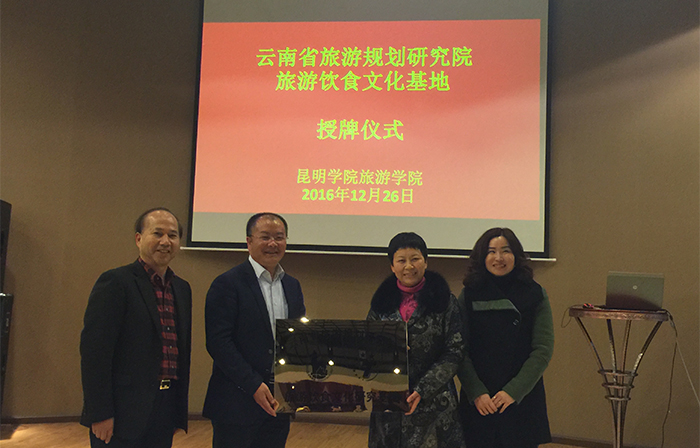 12月26日,云南省旅游饮食文化研究基地正式落户新葡萄8883官网AMG,云南省旅发委党组书记、主任余繁和校长黎素梅为“云南省旅游规划研究院旅游饮食文化基地”揭牌。