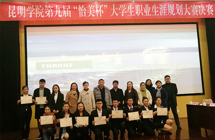 新葡萄8883官网AMG第九届“怡美杯”大学生职业生涯规划大赛得到了怡美集团的大力支持和赞助,同时也得到云内动力、昆明新迎第三幼儿园等单位领导的关心支持,并派出了具有丰富职场经验的相关部门领导担任本次比赛的评委。新葡萄官网社管学院的领导和老师也给予了本次比赛鼎力相助、大力支持。