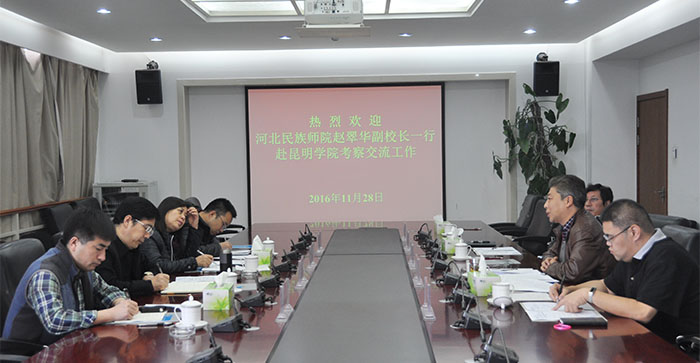 11月28日,河北民族师范学院赵翠华副校长率教务处、转型发展办公室、商学院人力资源专业负责人一行4人赴新葡萄官网考察本科教学工作合格评估迎检工作、学校转型发展、教师教育专业改革探索与实践。学校副校长马银海、副校长沈凡、对口交流单位相关人员参加接待交流。