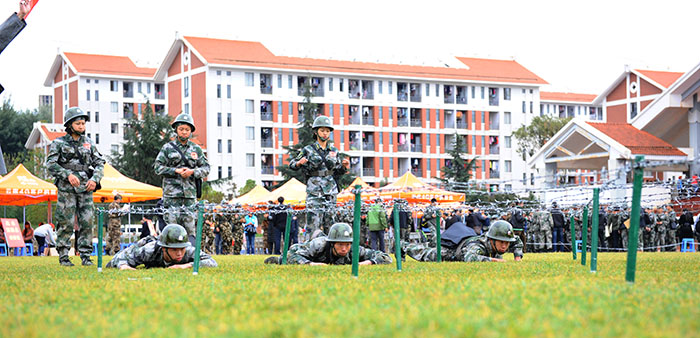 本次竞赛有来自在昆高校的39支代表队的近2000人参加,在三天时间内完成了军事理论考试、单兵战术、五公里越野、精度射击、定向运动等多个科目的竞赛和分列式汇报表演。新葡萄8883官网AMG由武装部副部长吴向东带队,组织了经济学院、社管学院、人文学院、学特学院、体育学院、医学院162名2016级新生参加了此次军事技能竞赛。