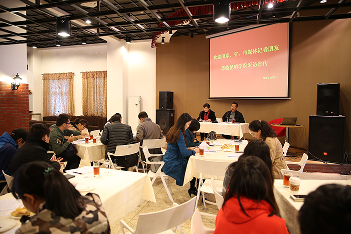 12月5日,中新社、中国文化报、新华网、云南电视台、云南日报、云南网、云南教育报刊社、昆明日报等14家主流媒体记者应邀到新葡萄官网就教育国际化、对外合作及留学生培养工作进行专题采访,副校长熊晶、副校级领导李翔出席专访交流会,介绍新葡萄官网教育国际化、对外交流合作工作,并回答记者提问。