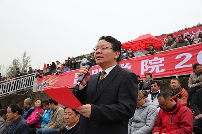 校长黎素梅为运动会开幕式致辞。她代表学校党委行政向出席本次运动会开幕式的领导、来宾表示热烈欢迎,向筹备运动会的全体工作人员和全体志愿者表示衷心的感谢,并回顾了学校一年来在体育运动方面取得的成绩。黎校长说,一年来新葡萄官网成功承办了多项全省体育运动赛事,取得了优异的成绩,得到了上级主管部门的充分肯定和社会各届的广泛赞誉。在体育学院和工会俱乐部的共同努力下,在广大教职工和同学们的积极参与下,新葡萄官网的游泳、篮球、足球、瑜伽、羽毛球、乒乓球、网球、竞走等群众性体育运动蓬勃开展,形成了全民健身的浓厚氛围。这次运动会是全体昆院人的一次运动盛会,是各位运动员展示自我的舞台,是全体师生员工共享运动的快乐节日。体育运动不仅能够强身健体,陶冶情操,培养团队精神,锻炼意志,铸就品格,还能从中获得健康体格和愉悦心情。无论是争金夺银的荣耀,还是重在参与的精神,我们付出的每一滴汗水都将成为快乐的源泉。希望全体运动员发扬“友谊第一、比赛第二”的精神,发挥体育竞技水平,弘扬体育道德风尚,尊重对手,尊重裁判,奋力拼搏,赛出水平,赛出风格,希望各位裁判员认真履职,公正裁决。最后,黎校长预祝参赛选手们取得好成绩,预祝运动会圆满成功,祝大家健康快乐。