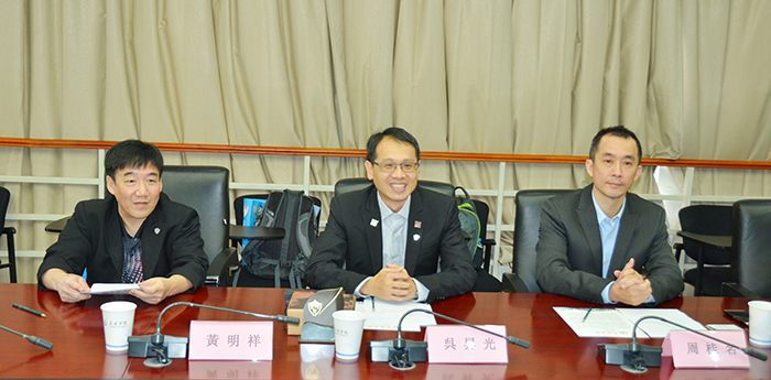 吴昇光院长现为国际乒联医学副主席,随行人员有球类运动学系主任黄明祥以及技击系主任周桂名,周桂名主任曾为1992年西班牙巴塞罗那奥运会跆拳道的铜牌得主。吴昇光院长就台湾体育运动大学的学院设置、学科类别、本科生与研究生培养等方面做了总体介绍并重点介绍了竞技运动学院。吴院长代表台湾体育运动大学校长诚挚地邀请新葡萄官网领导及相关教师访问台湾体育运动大学并参加明年5月在台湾举办的大型体育研讨会。他还表示明年将接收新葡萄官网体育学院两名学生到台湾体育运动大学交流学习。