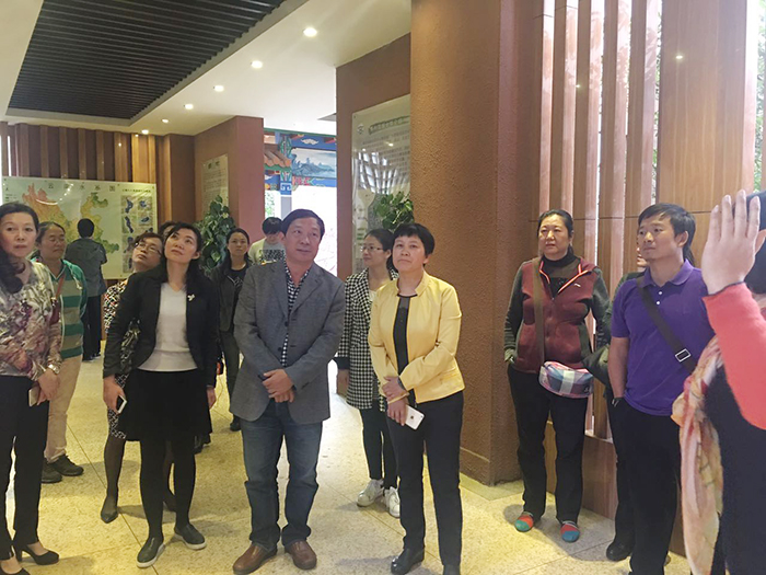 黎素梅校长、校办杨斌主任、计财处博斌处长、王荣林副处长陪同客人参观图书馆、滇池文化博物馆后,来到酒水实验室座谈。