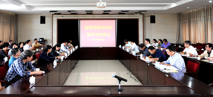 9月9日下午,新葡萄官网在办公楼502会议室举行2016年教师节座谈会。党委书记陈世波,党委副书记孙勇,副校长熊晶、郭华、董建华、马银海以及相关部门负责人和教师代表参加座谈。
