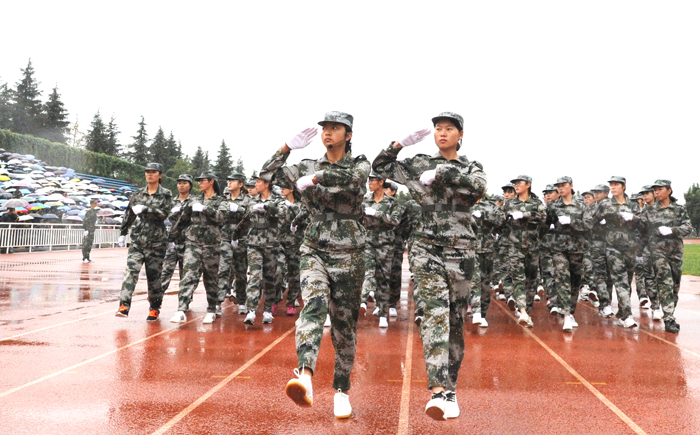 汇报演出伴随着连绵的阴雨在掌声和欢呼声中结束。虽然天公不作美,但全程没有一位受训同学放弃退出,也没有一位观礼师生中途退场。现场热烈的掌声是对同学们军训成果的充分肯定与褒奖,也是对全校师生员工昂扬的精神和坚强的作风的充分肯定与褒奖。