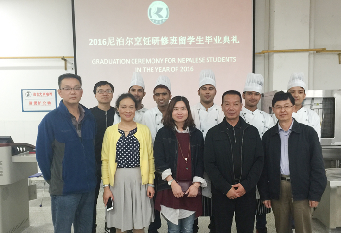 9月19日,新葡萄8883官网AMG2016年尼泊尔烹饪短期培训班毕业典礼在旅游学院烹饪实训中心落下帷幕。新葡萄8883官网AMG副校长李翔、国际交流处副处长陈静、旅游学院党政领导及相关老师出席了毕业典礼,毕业典礼由旅游学院院长田芙蓉主持。