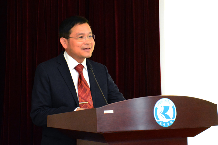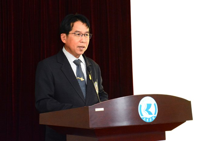 Pornpop Uampidhaya总领事在致辞中表示中泰两国一直有深厚的友谊,两校的合作将继续促进了两国的教育文化交流,也为学习中泰语言和文化的同学们提供了良好的资源,他祝愿两校的合作取得成功。