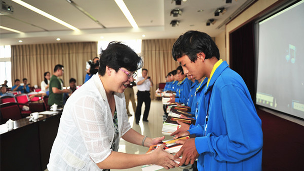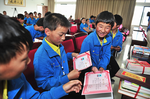 校长何华出席典礼,并为同学们颁发结业证书,寄语小同学们追求梦想、热爱家乡、永远学习、保持微笑。副校长熊晶、董建华参加结业典礼,向大学生志愿者颁发证书、为小同学们赠送书籍、文具等学习用品和衣物等生活用品,鼓励他们努力学习知识文化,积极改变自身命运。