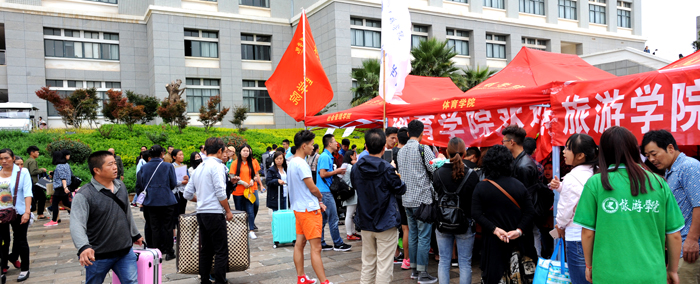 学校在市区内各大客运站、火车站等处安排志愿者接待,确保新生乘坐校车到达学校,并得到学生志愿者的热情周到服务。