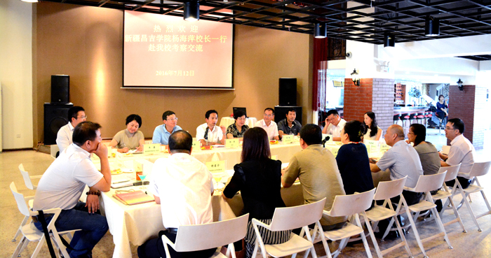7月12日,新疆昌吉学院校长杨海萍,党委副书记管白楠率马克思主义学院、中文系、数学系、体育系、初等教育学院、美术系、发规处、对外合作办公室等部门负责人到新葡萄官网考察交流。