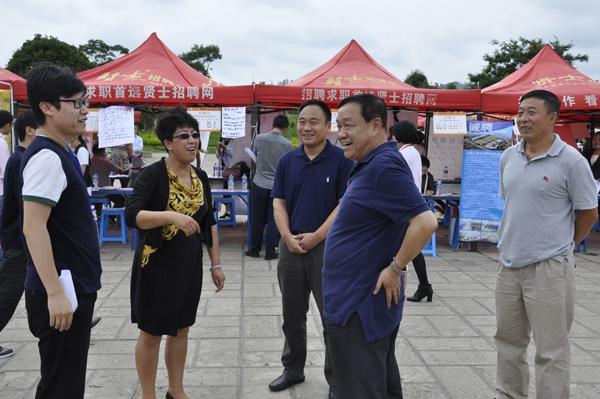 学校党委书记陈世波、副书记孙勇、副校长郭华等校领导亲临招聘会现场,了解用人单位招聘情况,鼓励毕业生积极面对严峻的就业形势,主动应聘,合理选择就业岗位。学校18个院系的领导、负责就业创业工作的辅导员、2016届毕业生和高年级学生参加招聘会。