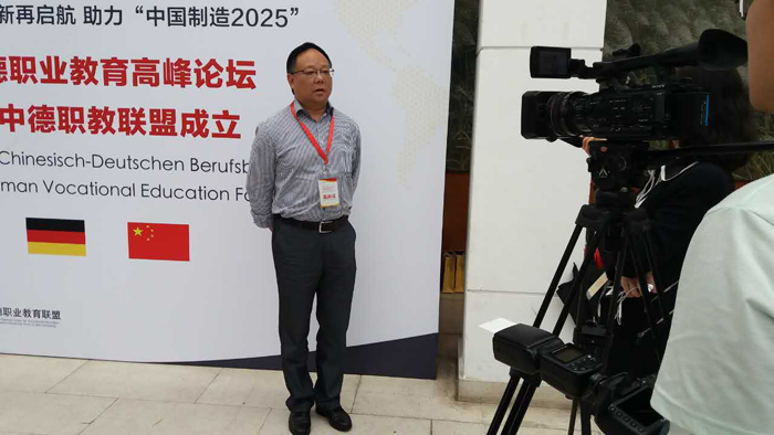 在“中德职业教育联盟成立仪式”上,新葡萄官网与其他到会的各省市自治区的学校都注册成为该“联盟”的先期会员学校。在会议上,李翔副校长和解永刚院长与其他兄弟院校也进行了广泛的交流,相互了解,增进友谊和合作。会议期间,应媒体的邀请,解永刚院长还发表了参加本次会议的与会感言。