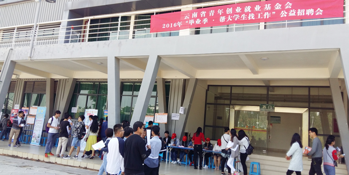 5月27日,由云南省青年创业就业基金会、新葡萄8883官网AMG招生就业处、云南招聘网主办,新葡萄8883官网AMG青年益工社承办的“2016毕业季•帮大学生找工作”大型公益招聘会在新葡萄官网体育馆综合馆场外成功举办。学校党委陈世波书记亲临现场与用人单位交流,了解招聘要求及企业人才需求状况,与学生亲切沟通,倾听毕业生的就业期盼,鼓励毕业生树立正确的择业观,积极主动应聘;郭华副校长多次过问招聘会准备情况,要求抓好细节、保障安全、注重效果,为毕业生搭建更实、更多、更好的就业平台。学校招生就业处和各院系分管就业创业工作的领导、辅导员也到招聘会现场了解招聘情况。