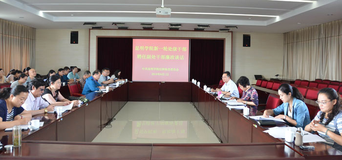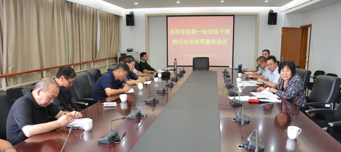 学校新一轮的处级干部聘任工作第一阶段已经完成,新聘任交流的处级干部均已到新岗位开展工作。根据《党政领导干部选拔任用工作条例》和党风廉政建设工作要求,学校党委副书记、纪委书记李媛芬对新一轮聘任到岗的处级干部开展干部任用集体廉政谈话。廉政谈话会议由纪委副书记、监察处长陈开祥主持。