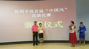 李翔副校长点评道:本次比赛各方面组织的比较到位,留学生也表现出了较高的汉语水平和才艺。希望以后越办越好,希望留学生把昆院当作自己的家,把中华文化与本国文明结合起来,做中国和云南与东南亚各国友谊的桥梁。