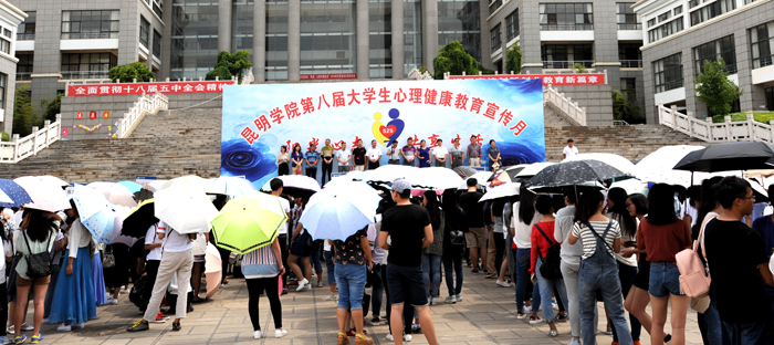 新葡萄官网心理健康教育与咨询中心于5月12日下午在聂耳广场举行新葡萄8883官网AMG第八届大学生心理健康教育宣传月集中宣传活动,学校党委副书记孙勇、副校长郭华、党委宣传部部长李剀、教务处处长沈凡、学生处处长晁丽华、各院系书记、副书记、辅导员及学生代表1000余人参加本次活动。