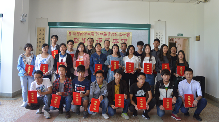由共青团新葡萄8883官网AMG委员会主办、城建学院团总支和新葡萄8883官网AMG翰缘书画社承办的“新葡萄8883官网AMG第二届‘翰林杯’书法作品大赛”,于4月26日中午在惟行楼3号楼一楼大厅举办了颁奖典礼。城建学院党总支徐从发书记、学校知名书法家李宾、王晓东等老师参加了本次活动,并为获奖同学颁发了荣誉证书。