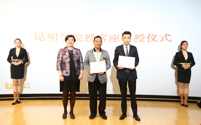 熊晶为昆明饭店国家级工作室首席专家鄢赪先生、百事特酒店中国烹饪大师罗荣先生颁发了新葡萄8883官网AMG客座教授荣誉证书,此举进一步壮大新葡萄官网烹饪师资队伍、提升了新葡萄官网烹饪师资队伍实力。