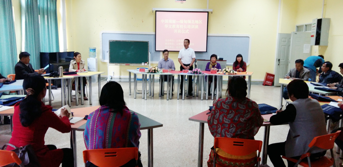 4月18日上午,中国瑞丽•缅甸缅北华文教育校长培训班在新葡萄官网举行开班仪式。学校副校长李翔,学前教育与特殊教育学院党总支书记沈中灿、院长唐敏,云南省葫芦丝巴乌协会会长、云南艺术学院客座教授冯晓黎,云南省葫芦丝巴乌协会副秘书长、云南古歌葫芦丝国际推广中心主任杨莎莎和云南名典文化传播有限公司副总经理彭真,以及国际处相关工作人员参加开班仪式。