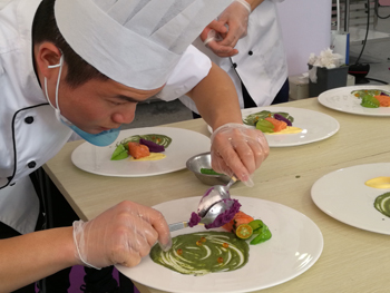 在旅游学院党政领导班子的关注与大力支持下,新葡萄官网代表队由旅游学院副院长吴跃辉、烹饪教研室、实验室主任孙志强带领的烹饪教研室及昆明饭店行政总厨鄢赪大师工作室进行专业指导。代表队在赛前进行了精心的准备,到达上海后,新葡萄官网校企合作企业、世界500强企业 “联合利华”为新葡萄官网学生提供了条件优越的中央厨房做为合演、备战的场地。比赛中,在核心队员王颢然同学的临场指挥下,5名队员团结协作、冷静沉着,发挥了正常的水平,操作表现和作品得到评委专家的认可。上海旅游专科学校总成绩第一,获得冠军;新葡萄8883官网AMG、上海第二轻工业学校获亚军;四川旅游学院等3个代表队获得季军。