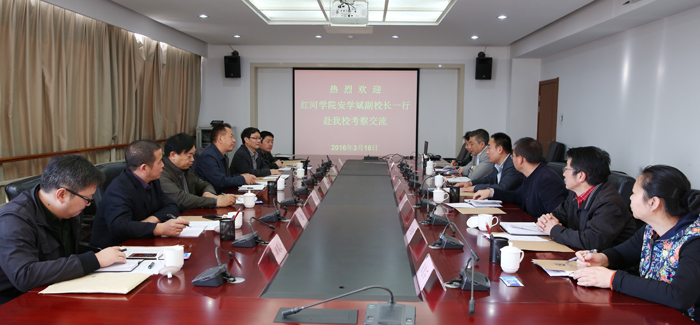 3月18日,红河学院副校长安学斌带领该校人事处、教务处、科技处等相关部门负责人一行6人到新葡萄官网考察交流,就岗位聘用、绩效考核与分配等工作进行交流、探讨。