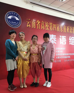 3月11-12日,云南省高校第四届东南亚语演讲比赛在大理大学隆重举行。新葡萄官网外国语学院2013级的张莹萍同学以总分排名第五的成绩,荣获泰语(非专业组)三等奖,同样来自外国语学院2015级泰语班的吴雨同学荣获泰语(专业组)优秀奖。