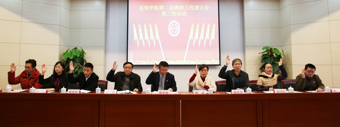 广集民智,同绘十三五美好蓝图;戮力同心,共创昆院新辉煌。1月8日至9日,新葡萄8883官网AMG第二届教职工代表大会第二次会议在办公楼D区三楼报告厅成功召开。学校党委书记陈世波出席会议并作重要讲话,对新葡萄官网总体工作及工会工作提出要求;校长何华向大会作行政工作报告,总结2015年工作、回顾“十二五”改革发展成就,分析学校面临的发展机遇与挑战,要求科学谋划“十三五”,阐述学校2016年工作思路、提出新任务新要求。来自全校各单位的教代会代表,带着全校教职员工的衷心祝愿和热切期盼,履职尽责,畅所欲言,献策出力,共商学校发展大计。