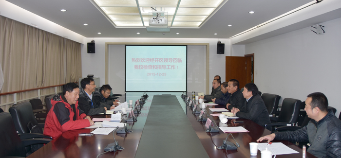 按照经开区对驻区单位开展2015年度安全生产工作综合督查考核的通知要求,12月25日上午,经开区安监局副局长李旭武一行3人组成的考核组对新葡萄官网2015年安全生产工作进行督查考核。学校副校长李翔、保卫处处长方永昆、后勤集团党总支书记杨平、资产与实验室管理处副处长何松林、保卫处副处长孙丽及相关人员参加考核会。