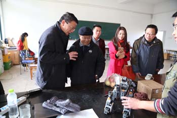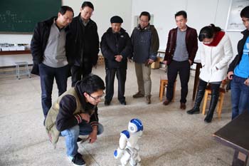 走进开放性智能机器人实验室,梁公卿看到三三两两正在做实验的同学并俯身亲切的问道:“同学们,在做什么实验呀!”“这是我们自主设计的智能机器人,现正调试程序,测试性能。”一位同学自豪地应答。“你们真了不起,都能做这高科技的东西了,能展示一下你们的成果吗?”同学们欣然答应,并将自己设计好的智能机器人按程序一一操作展示给大家。看了智能机器人动作表演及与人的互动交流等功能展示后,梁公卿高兴地赞扬道:“同学们设计的智能机器人很好,你们能将所学专业知识与实践相结合、个人兴趣与创新发明相结合,不断探索、不断创新,展示了当代青年的创新精神。”梁公卿勉励大家要惜时学习,永攀科学高峰。随行的自动控制与机械工程学院院长毕涛还向梁公卿介绍了学院依托开放性智能机器人实验室硬件平台,从2015年9月份开设了《机器人创新设计与竞赛》公选课,面向全校学生开放,吸引来自全校机制、通信、电气、物联、计科、服装、酒店等专业的50余名学生加入机器人创新设计中。通过这一门综合创新实践课,将机器人前沿领域的研究及面临的问题介绍给同学们,激发学生学习兴趣、让同学们学会思考掌握解决问题的方法、培养学生的动手能力及团队合作意识、提高学生的独立创新意识和专业素养。梁公卿听后,肯定地说,培养创新人才是高校的职能之一,新葡萄8883官网AMG在人才培养中注重个人兴趣培养,引导学生作创新发明,做法值得推广。梁公卿强调,高校一定要注重创新人才培养,要抢抓创新人才培养的制高点,为学生创造条件、搭建平台,鼓励学生不断尝试创新。