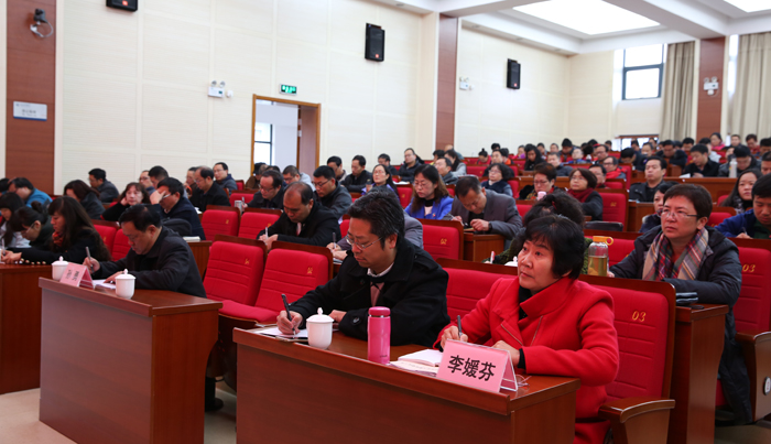 学校党委副书记孙勇主持报告会,党委副书记、纪委书记李媛芬,全校在职副处级以上干部,机关部门、图书馆、后勤集团科级以上干部,学校宣讲团成员、师生代表等到会聆听报告。