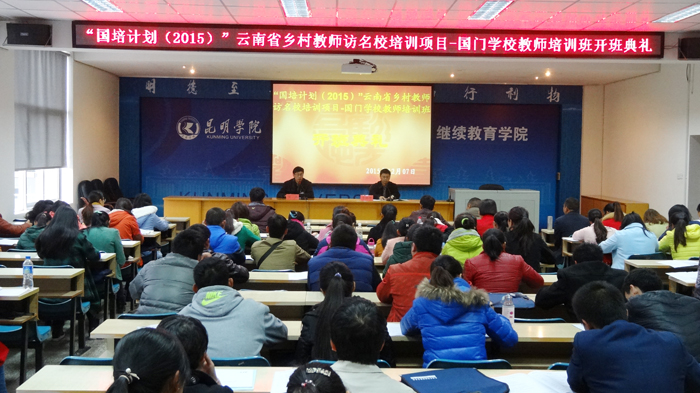12月7日上午,新葡萄8883官网AMG“国培计划(2015)”云南省乡村教师访名校项目----“国门学校”教师培训开班典礼在继续教育学院举行,来自文山、红河、版纳、临沧、普洱、德宏、保山及怒江地区的25个边境县的初中语文、小学数学两个学科的100名“国门学校”教师,将接受为期10天的集中专题培训。