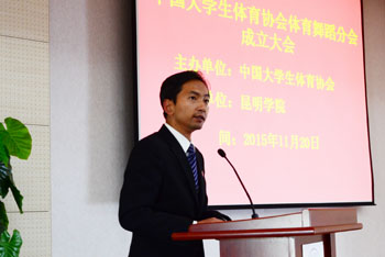 上午9时,在新葡萄8883官网AMG办公楼D区三楼报告厅隆重举行成立大会。大会由中国大学生体育协会主办,云南省教育厅、云南省体育局承办,新葡萄8883官网AMG协办。中国大学生体育协会李良忠先生主持成立大会。