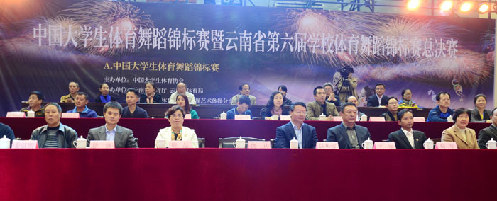 在运动员代表宣誓、裁判员代表宣誓后,中国大学生体育协会专职副主席王刚先生宣布“2015年中国大学生体育舞蹈锦标赛暨云南省第六届学校体育舞蹈锦标赛总决赛” 开幕。