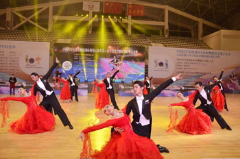 11月20日晚,“2015年中国大学生体育舞蹈锦标赛暨云南省第六届学校体育舞蹈锦标赛总决赛”在新葡萄8883官网AMG体育馆举行。北京体育大学等来自全国63所大学的一千多名运动员、领队教师及裁判员参加了开幕式。这是迄今为止规模空前的同类赛事。