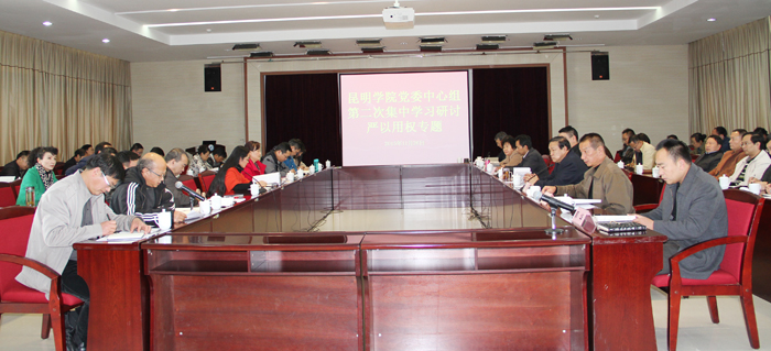 11月26日下午,学校在办公楼502会议室召开党委中心组“三严三实”和“忠诚干净担当”专题教育第三专题第二次集中学习研讨。此次学习围绕“严以用权”专题,突出“为民用权、秉公用权、规范用权,树立忠诚干净担当新形象”主题。学校领导、各管理服务部门领导、各党总支(直属党支部)书记、学校专题教育领导小组办公室全体成员参加了学习。学习活动由学校党委副书记孙勇主持。